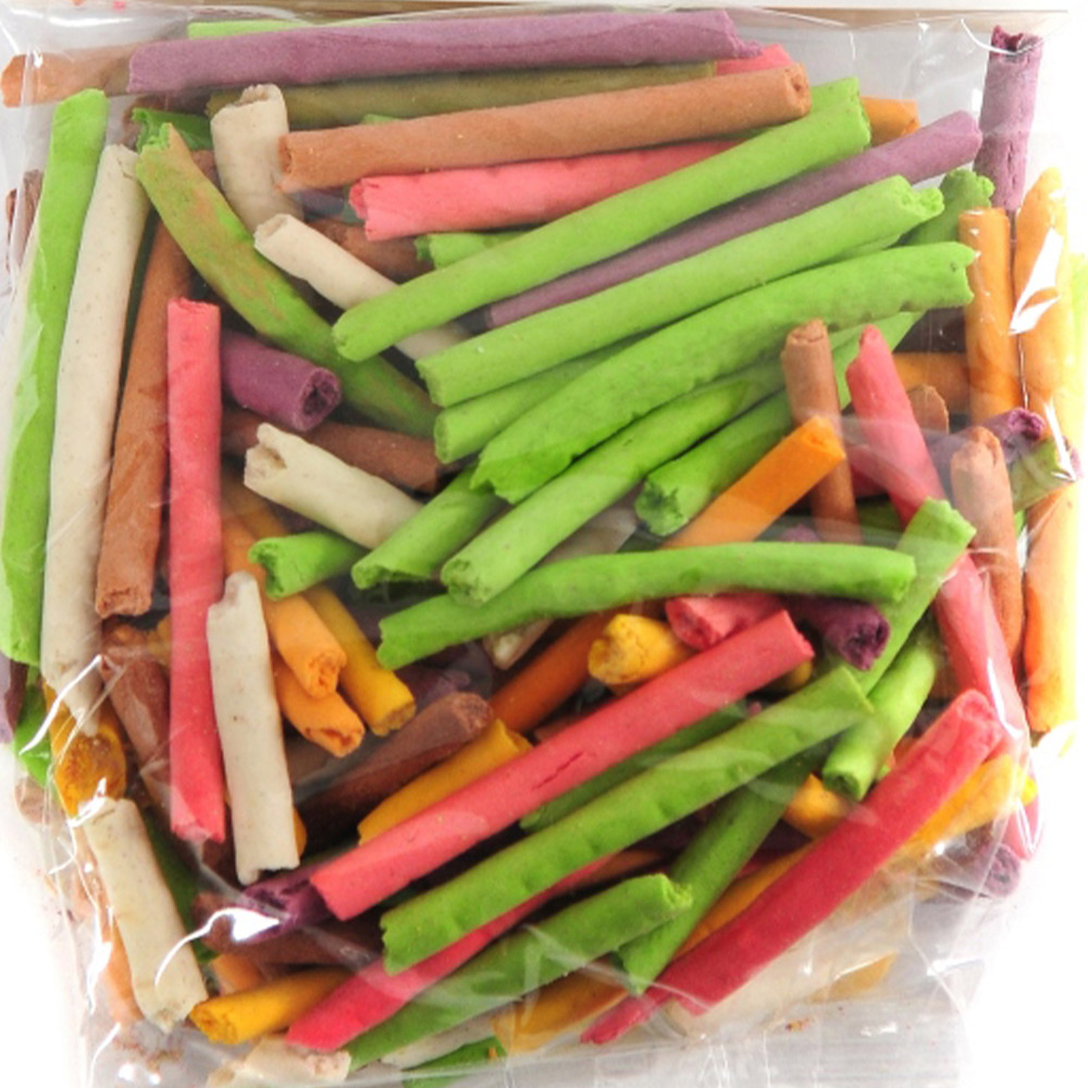 The Critter's Choice Tasty Sticks from Happy Pet is a small treat bag full of colourful tasty titbits, specially crafted for your small animal. The sticks are great to be used as part of a balanced diet and are the perfect way to reward your small animal. These are perfectly sized sugar-free treats that can be offered daily to your small animal. When offering these treats to your small animal is great for encouraging interaction with your pet. Size: 75g.
