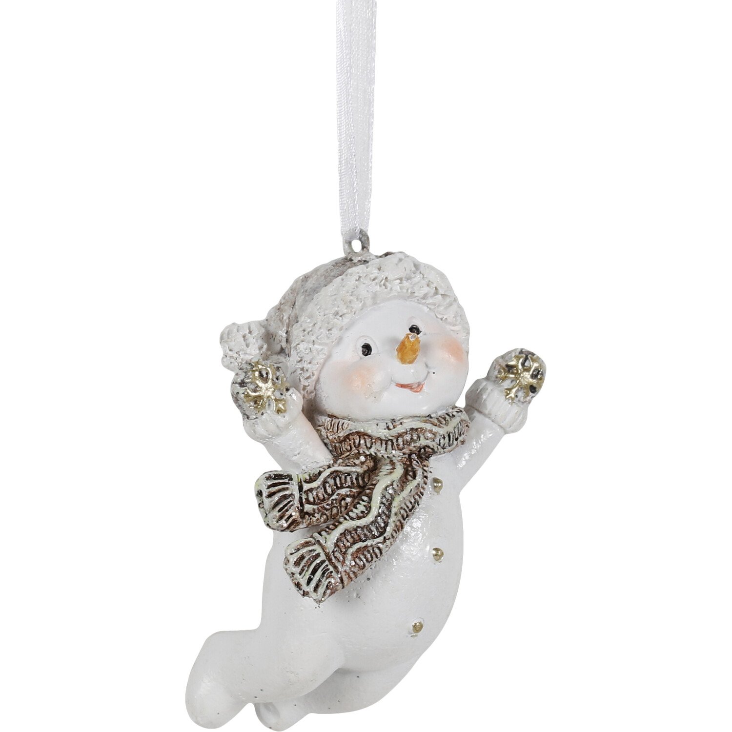 Transform your home into a winter wonderland setting with this precious Happy Snowman Hanging Decoration. Available in an assortment of adorable designs, one holding snowflakes and the other with ice skates, you are guaranteed to love whatever design you receive. Finished with intricate gold detailing for tons of festive joy.