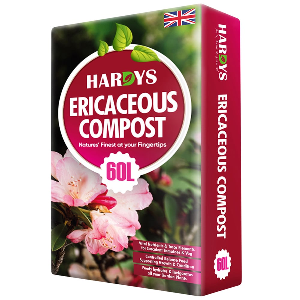 Unlock the full potential of your acid-loving plants with the Hardys Ericaceous Compost 60L, expertly crafted to cater to the unique needs of species like Azaleas, Rhododendrons, and Camellias. This 60L bag of loam-based acidic soil is packed with 14 essential nutrients, including potassium, phosphate, nitrogen, and iron, ensuring your plants receive all they need for optimal growth. With a perfect pH of 4.0 and lime-free composition, this compost creates ideal conditions for strengthening delicate roots and boosting plant development. Its crumbly texture is designed to retain moisture effectively, preventing waterlogging and ensuring your plants stay hydrated during dry spells. Whether for indoor houseplants or outdoor pots, this versatile compost is perfect for seeds, seedlings, cuttings, or established plants, making it an indispensable addition to your gardening arsenal.