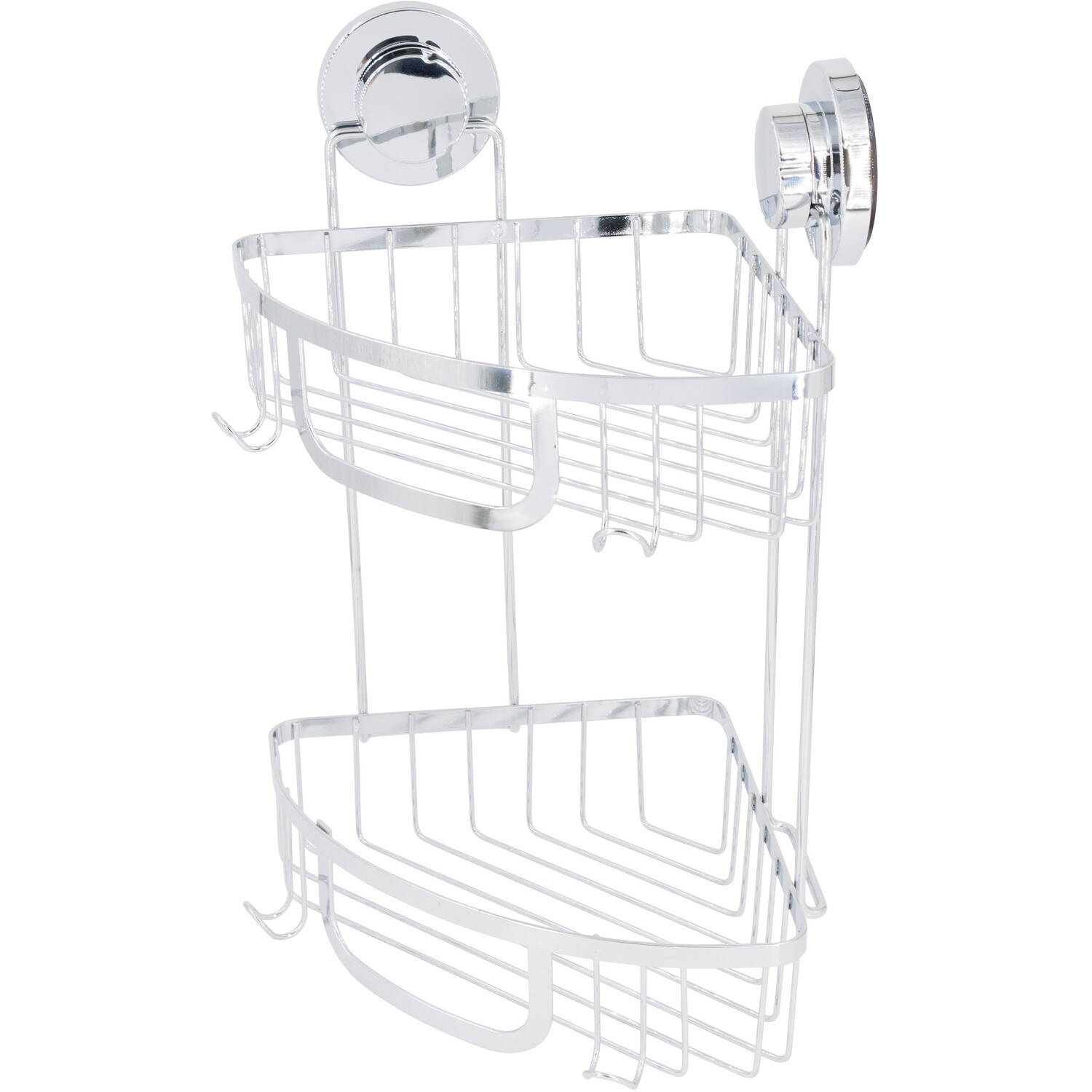 Make the most out of your bathroom space with this Harrow Bathroom Corner Basket. The basket features a sturdy two-tier structure in a shiny chrome finish that will easily coordinate with your decor. Complete with suction cups for easy installation, the basket offers a hassle-free storage solution for your toiletries.