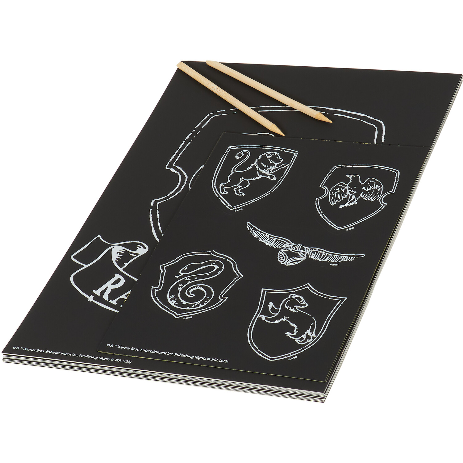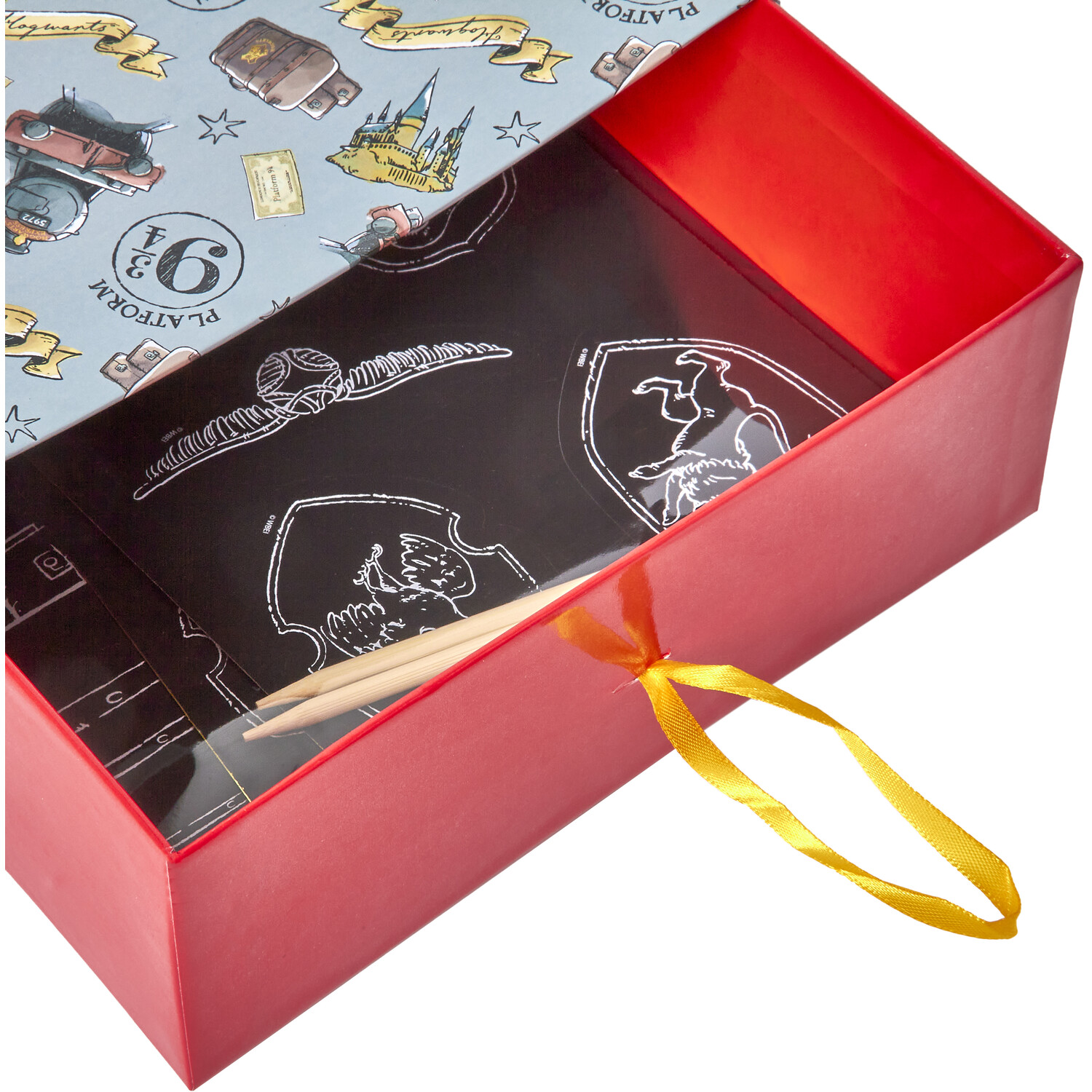 Discover the magic of the wizarding world with this Harry Potter Mega Scratch Art Box Set. The perfect gift for any Harry Potter fan, this fantastic kit features a relaxing and simple craft activity for most ages. These metallic sheets depict the Hogwarts crest, the Golden Snitch, and more. Ideal for framing or sticking up on walls, this Potter-themed gift is sure to impress little witches and wizards.