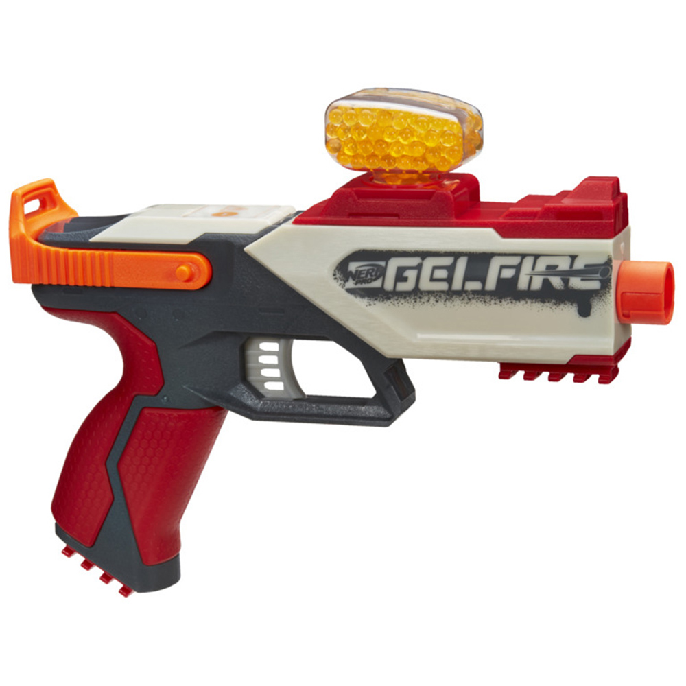 Dominate the battlefield with this Hasbro Nerf Pro Gelfire Legion Blaster. Featuring spring action priming, this massive-capacity blaster has slam fire action to fire rounds in a continuous stream, and no batteries are required. The awesome backyard blaster includes a 130-round capacity hopper and 300 hydrated soft super absorbent polymer projectiles. Additionally, it also has a trigger lock to prevent accidental firing and protective eyewear. Use strategy and skill to challenge the competition and grab the advantage in outdoor games. The rounds come hydrated in the box, and when fired from the blaster, it expels at a high velocity and burst when they hit a target. So no need to pick up the rounds. Outdoor use is recommended. For ages 14 and above. Nerf and all related properties are trademarks of Hasbro.