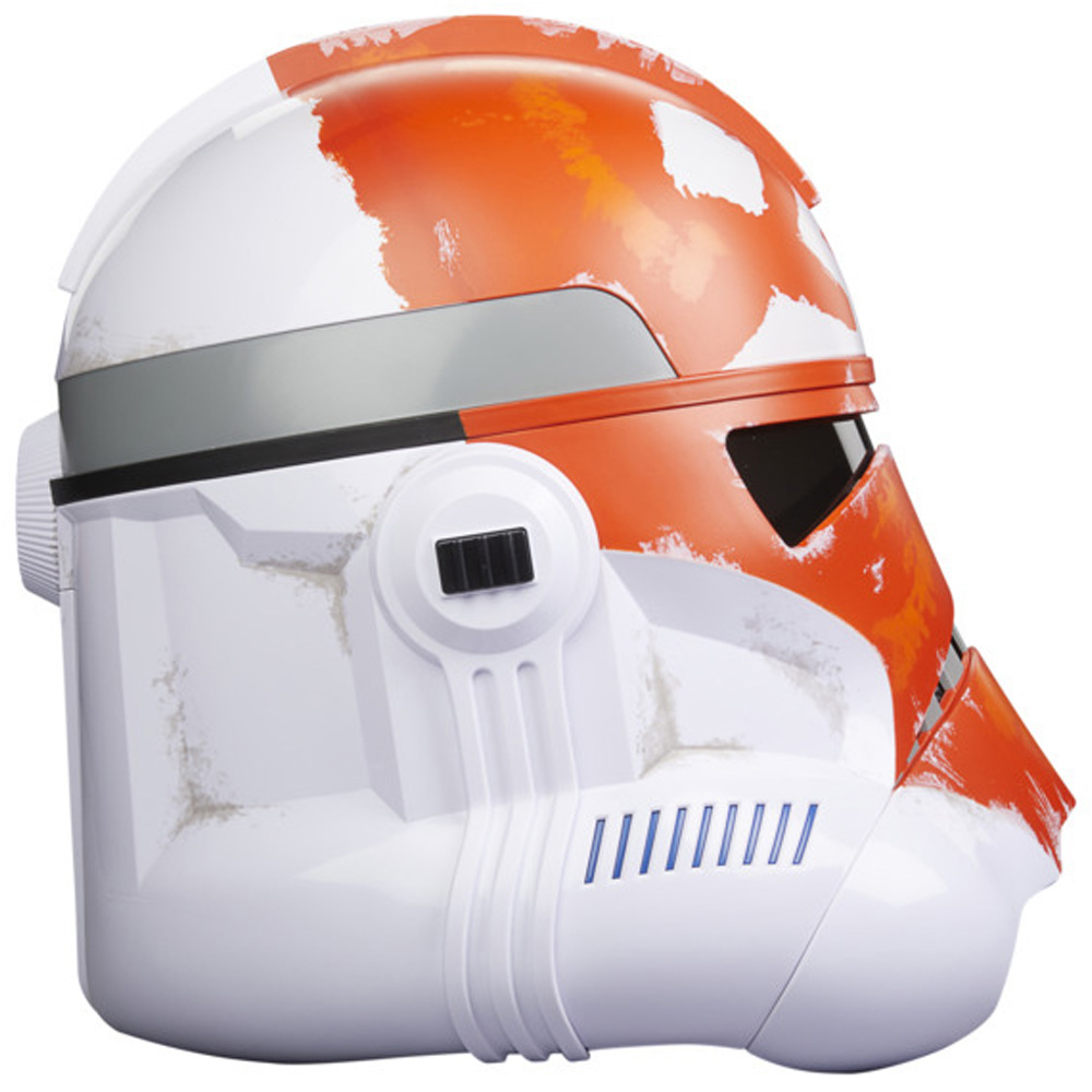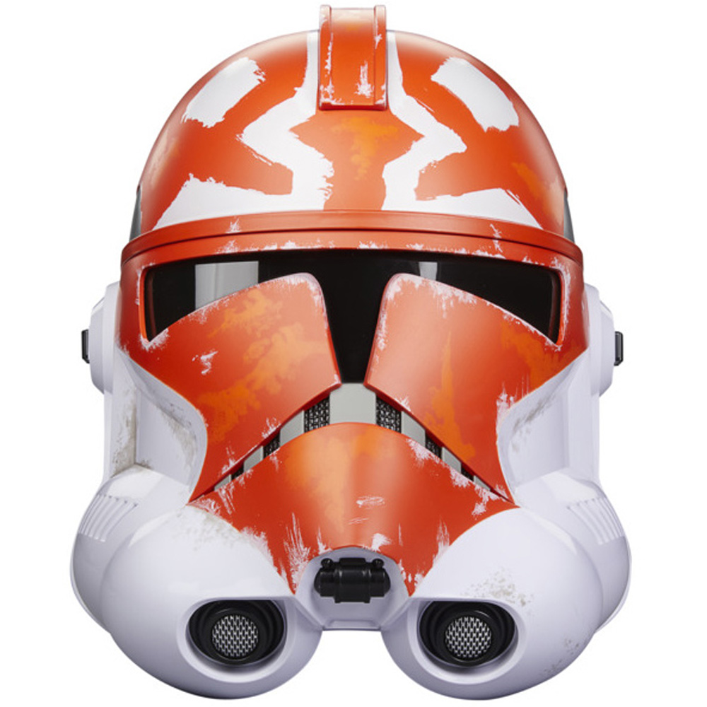 This 332nd Ahsoka’s Clone Trooper Roleplay Helmet from Hasbro is inspired by the Star Wars The Clone Wars animated series. Featuring highly detailed deco, series-inspired design, and adjustable fit, this full-scale Black Series helmet is an iconic addition to any Star Wars fan’s collection. With the press of a button, the wearer’s voice is electronically distorted to sound like that of a clone trooper. This roleplay helmet features soft padding for an adjustable fit to ensure the wearer is always ready for battle!