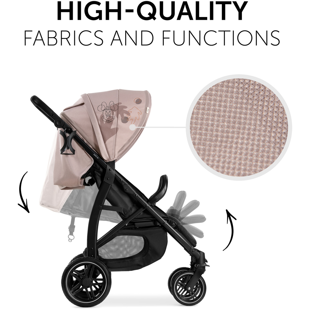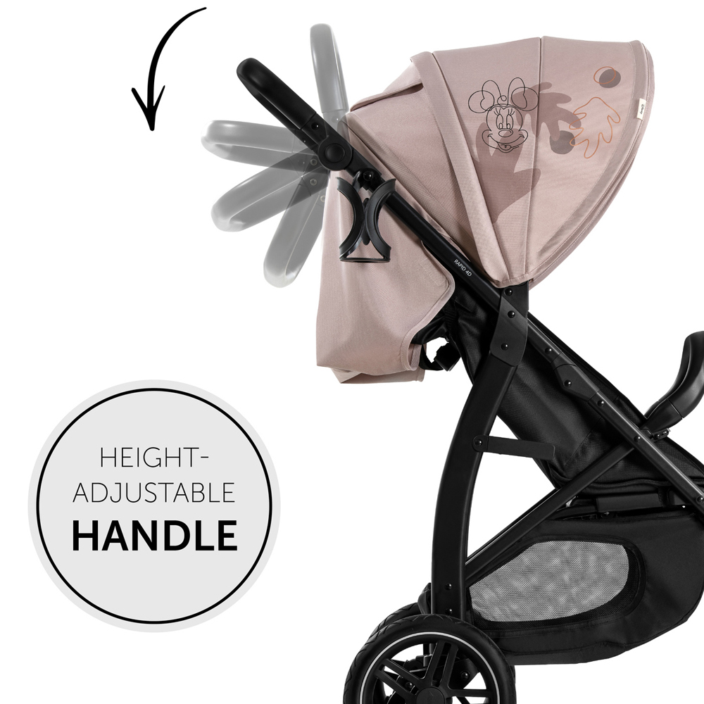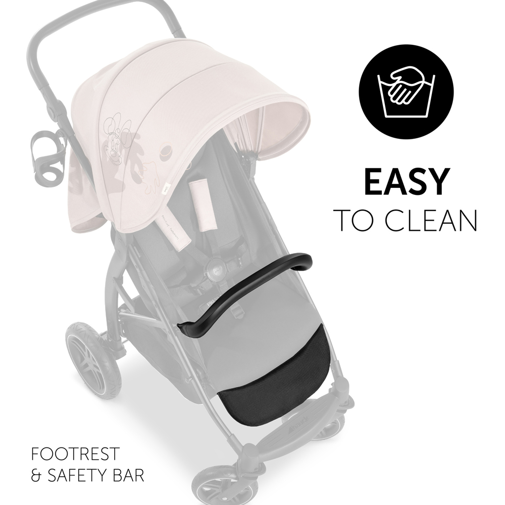 The Rapid 4D is a very stylish companion that comes with high-quality functions, as well as a modern, curved frame. As an all-round pushchair with large, puncture-resistant all-terrain wheels that absorb bumps, it can be used both in the city and the country. The swivelling front wheels make changes of direction easy and can be locked on uneven terrain. The Rapid 4D folds away compactly with one hand by using the press and pull system on the padded release loop, by which you can easily transport and stow away this all-rounder while having one free hand for your child. The pushchair stands out by its premium materials and features. High-quality, durable fabrics on the three-zone canopy rated UPF 50+ and on the spacious seat make the Rapid 4D an eye-catching pushchair. Also, the backrest can be continuously reclined up to a lying position. Thanks to the included rain cover, your child is well protected against wind and rain. Thanks to the height-adjustable handlebar with a cup holder, parents of different heights can also benefit from a comfortable, back-friendly walk. Compared to other pushchairs, the Rapid 4D can be used longer. In combination with the seat and the basket, it offers your child a comfortable drive for up to 22kg or four years and accommodates up to three kg of shopping. The footrest’s fabric and the safety bar’s surface are made of durable and easy-care materials, making your Rapid 4D look well-maintained in no time despite muddy shoes and sticky hands. The Rapid 4D comes with a safety package including a padded five-point harness, a removable protection bar that facilitates your child’s entry and exit, as well as white lines on the wheels that provide more visibility when it gets dark.
