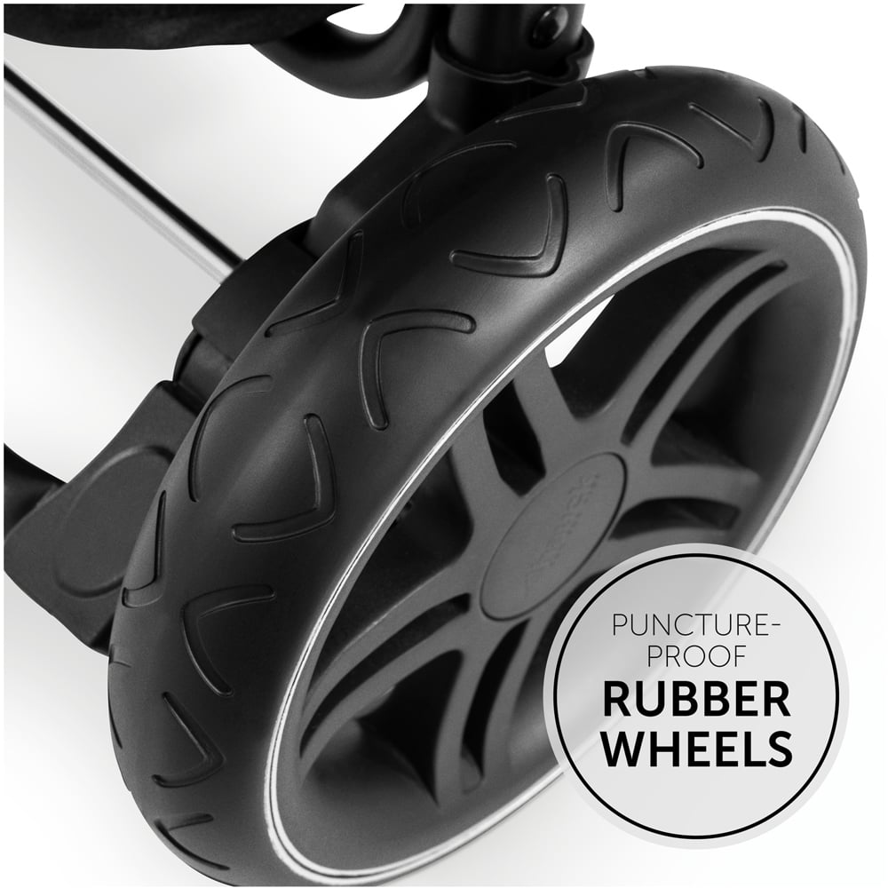 The Rapid 4D is a very stylish companion that comes with high-quality functions, as well as a modern, curved frame. As an all-round pushchair with large, puncture-resistant all-terrain wheels that absorb bumps, it can be used both in the city and the country. The swivelling front wheels make changes of direction easy and can be locked on uneven terrain. The Rapid 4D folds away compactly with one hand by using the press and pull system on the padded release loop, by which you can easily transport and stow away this all-rounder while having one free hand for your child. The pushchair stands out by its premium materials and features. High-quality, durable fabrics on the three-zone canopy rated UPF 50+ and on the spacious seat make the Rapid 4D an eye-catching pushchair. Also, the backrest can be continuously reclined up to a lying position. Thanks to the included rain cover, your child is well protected against wind and rain. Thanks to the height-adjustable handlebar with a cup holder, parents of different heights can also benefit from a comfortable, back-friendly walk. Compared to other pushchairs, the Rapid 4D can be used longer. In combination with the seat and the basket, it offers your child a comfortable drive for up to 22kg or four years and accommodates up to three kg of shopping. The footrest’s fabric and the safety bar’s surface are made of durable and easy-care materials, making your Rapid 4D look well-maintained in no time despite muddy shoes and sticky hands. The Rapid 4D comes with a safety package including a padded five-point harness, a removable protection bar that facilitates your child’s entry and exit, as well as white lines on the wheels that provide more visibility when it gets dark.