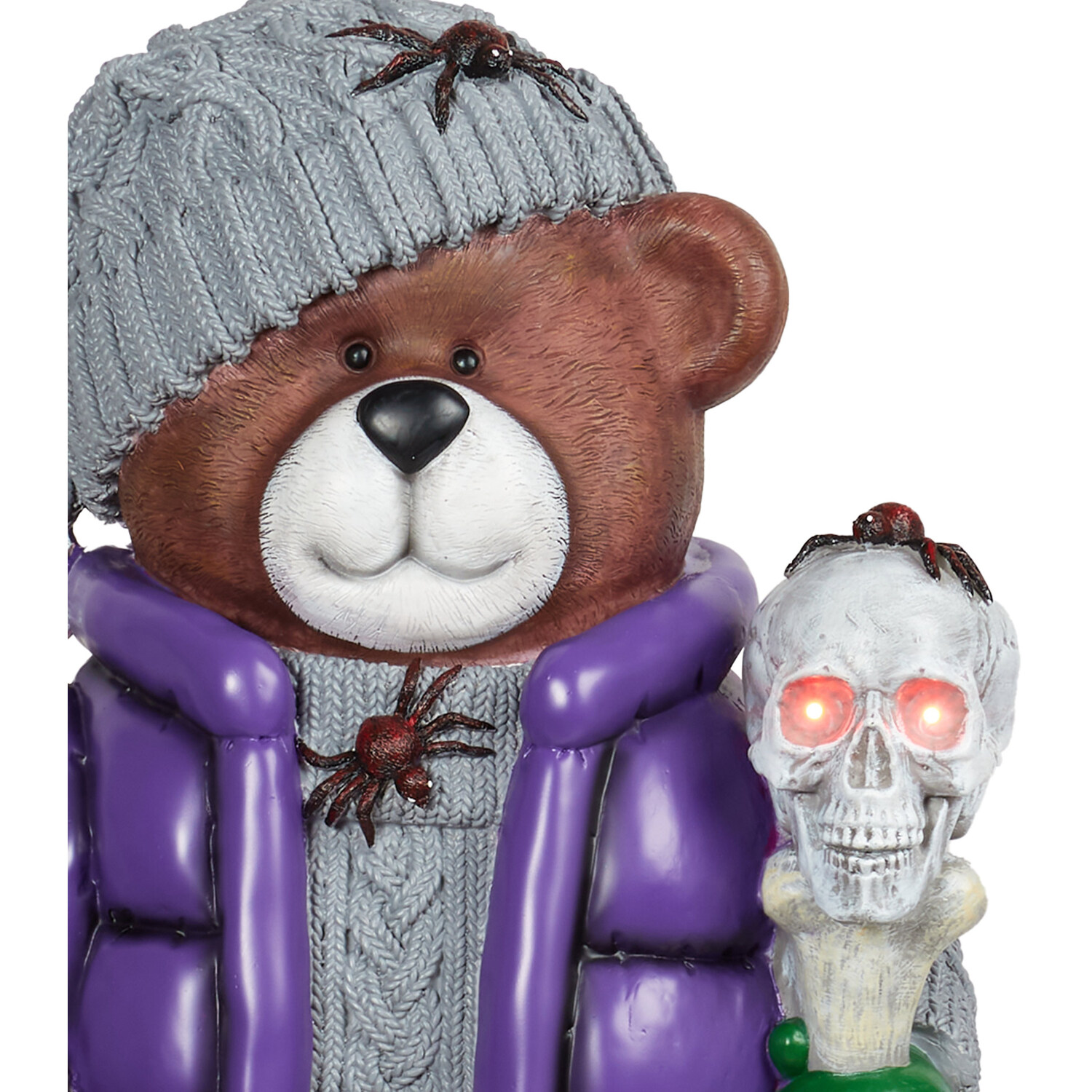 This Haunted Halloween Light-Pp Bear Decoration makes a charming addition to your haunted wonderland. It looks cute wearing its winter warmers and carrying a pumpkin, but the skull in its other hand lights up and glows red in the night for a truly eerie feeling. Place it in your entranceway or display it on tables or mantelpieces to add a fun yet creepy touch to your Halloween decorations.