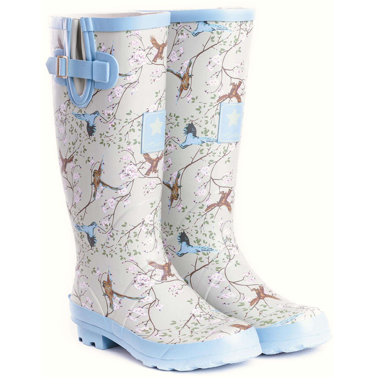 Excellent for keeping your feet dry and mud free, the Hawkins Women's Bird Wellingtons are practical and stylish. With a fun bird design, these rubber wellies features an adjustable side leg gusset and strap detail for additional comfort.