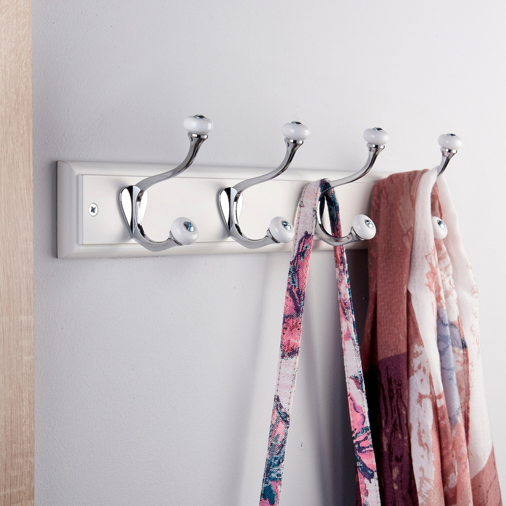 Elevate your organisation with this wall-mounted coat rack, featuring heavy-duty double-tiered metal hooks that can hold up to 3.4kg each. Ideal for hanging winter coats, bags, and more on the same hook without overcrowding. The board is crafted from eco-friendly wood sourced from well-managed forests, providing a sustainable storage solution. Perfect for various settings such as entryways, hallways, bedrooms, cloakrooms, and offices, this rack helps free up floor space by accommodating coats, hats, scarves, and umbrellas. It comes pre-assembled with screws and plugs for solid walls, with alternative fixings needed for plasterboard surfaces, ensuring a quick and hassle-free installation.