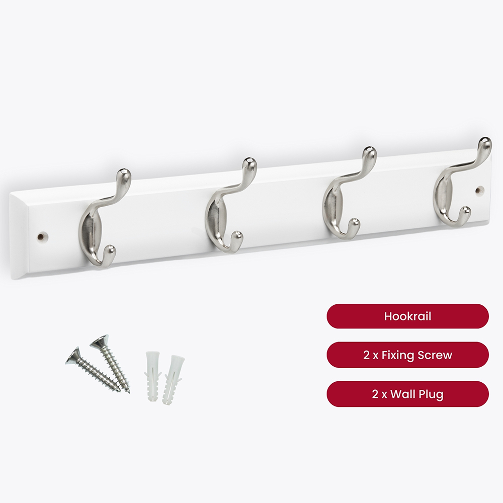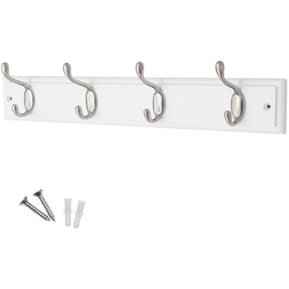 Organise your space with this heavy-duty wall-mounted coat rack, featuring double-tiered metal hooks that can support up to 3.4kg each. Perfect for hanging winter coats, bags, and more on the same hook without overcrowding. Crafted from eco-friendly wood sourced from well-managed forests, this rack offers a sustainable storage solution. Ideal for entryways, hallways, bedrooms, cloakrooms, and offices, it helps free up floor space by accommodating coats, hats, scarves, and umbrellas. With dimensions of 45.7cm (L) x 7cm (H) x 1.6cm (D) and hooks spaced 11.2cm apart with mounting holes 41.6cm apart, it fits various spaces. Pre-assembled and includes all necessary fixings for quick and hassle-free installation.