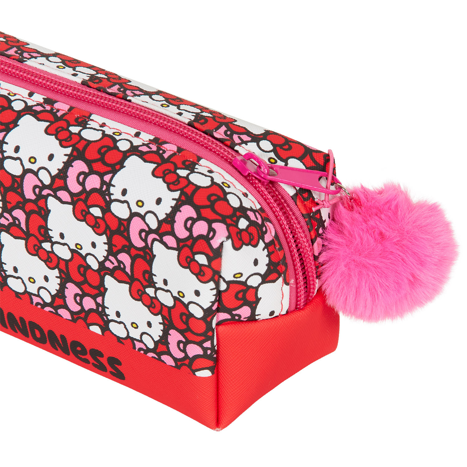 Keep your stationery neat, tidy and secure in this Hello Kitty Pencil Case which has a fun pom pom zip pull. Ideal for any Hello Kitty fan, this pencil case allows you to keep your essential stationery items with you at home, work, school or on the go.