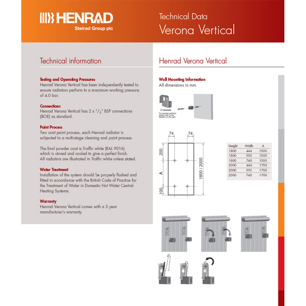 Henrad by Stelrad Verona White Vertical Radiator 1800 x 592mm