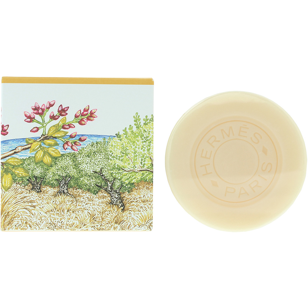 Hermes Un Jardin A Cythere Soap is a luxurious, aromatic soap that gently cleanses the skin while enveloping it in the fresh, green fragrance of Un Jardin A Cythere. Inspired by the Mediterranean landscape, this soap’s rich lather leaves the skin feeling soft, smooth, and hydrated. Its delicate scent evokes the natural beauty of olive groves and gardens, providing a refreshing and grounding experience.