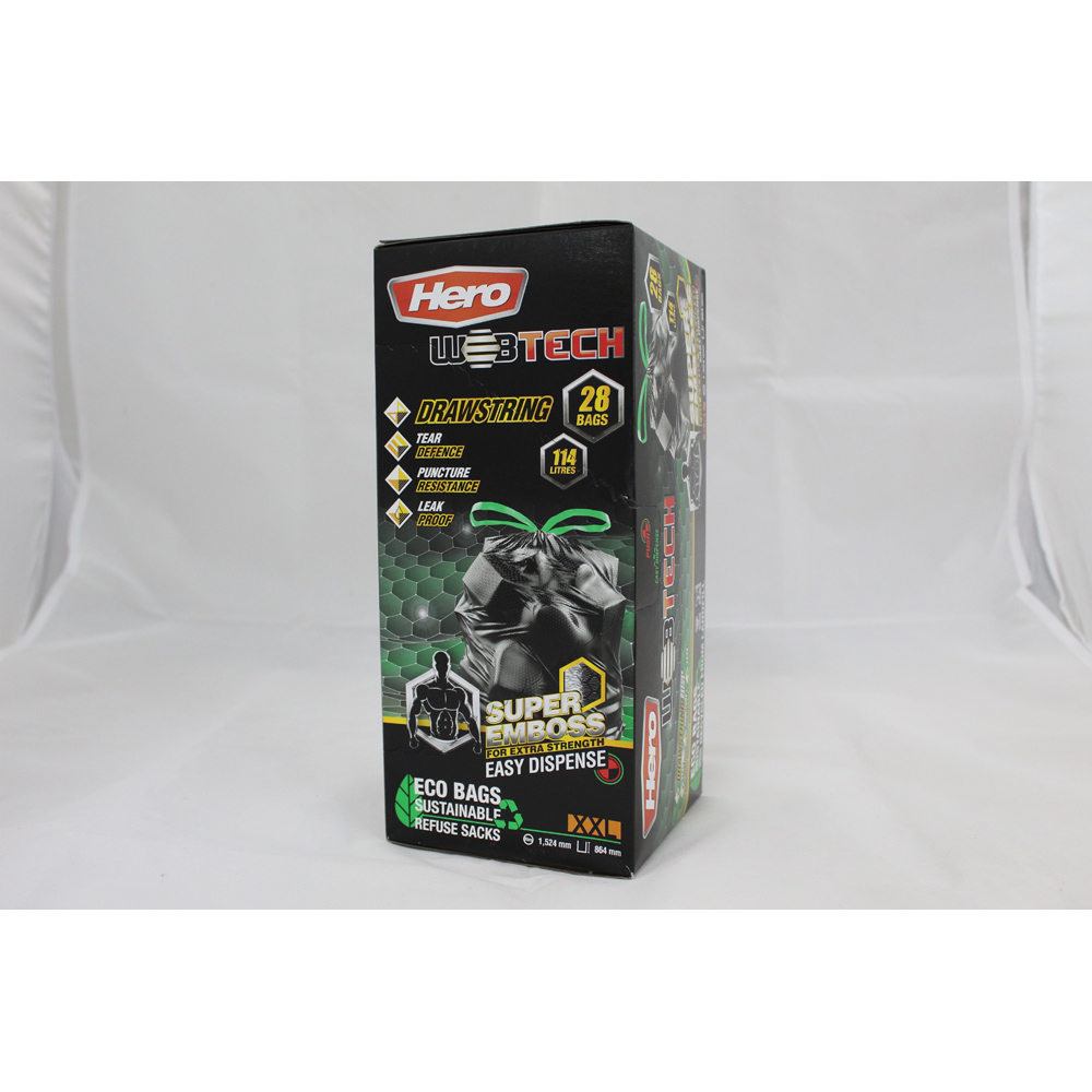 Experience the practicality of the Hero Heavy Duty Bin Bag, designed to cater for a variety of waste management needs. Whether you're dealing with general waste, paper trash, or even food and plastic waste, these extra-large sacks are up to the task. At 114 litres each, they offer ample capacity for most indoor and outdoor settings, including the kitchen, bathroom, and garden. Crafted from robust polyethylene, these bin bags are engineered for durability. The smooth finish ensures easy handling, while the drawstring feature allows for a secure and tidy disposal of refuse. Their universal black colour seamlessly blends with any decor. With a generous size of 762mm in width and 30m in length, these sacks are a reliable solution for your waste disposal requirements.