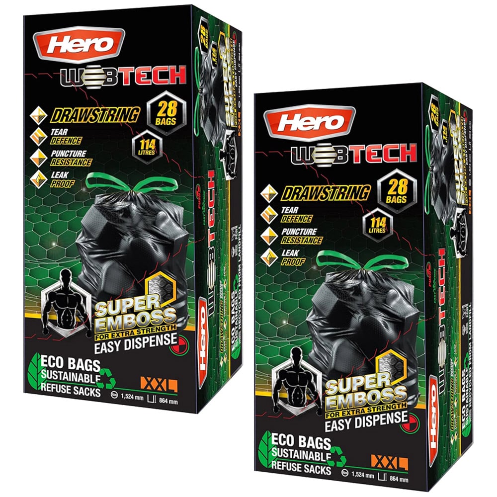 Experience the practicality of the Hero Heavy Duty Bin Bag, designed to cater for a variety of waste management needs. Whether you're dealing with general waste, paper trash, or even food and plastic waste, these extra-large sacks are up to the task. At 114 litres each, they offer ample capacity for most indoor and outdoor settings, including the kitchen, bathroom, and garden. Crafted from robust polyethylene, these bin bags are engineered for durability. The smooth finish ensures easy handling, while the drawstring feature allows for a secure and tidy disposal of refuse. Their universal black colour seamlessly blends with any decor. With a generous size of 762mm in width and 30m in length, these sacks are a reliable solution for your waste disposal requirements.