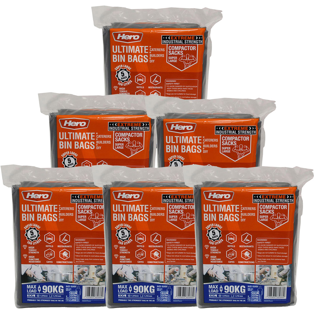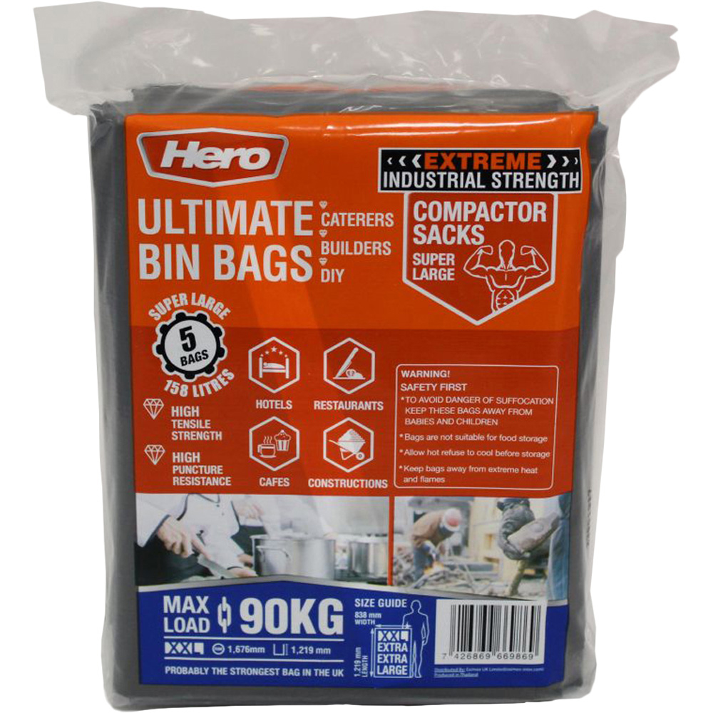 Experience the practicality of Hero Heavy Duty Bin Bags with this 158L Industrial Garden Refuse Sacks, designed for durability and strength. Perfect for handling a variety of waste types, these extra-large, black bin bags are suitable for food waste, paper, plastic, and general refuse, making them a versatile solution for your indoor or outdoor waste management needs. Crafted from high-quality polyethylene, these bags boast a robust construction that can withstand the demands of any room or outdoor setting. Each bag measures 1200mm in height, and 840mm in width, and has a generous 76m length, ensuring a secure and hygienic disposal of your waste. With a capacity of 114L, these bags provide ample space for your refuse, reducing the need for frequent changes.