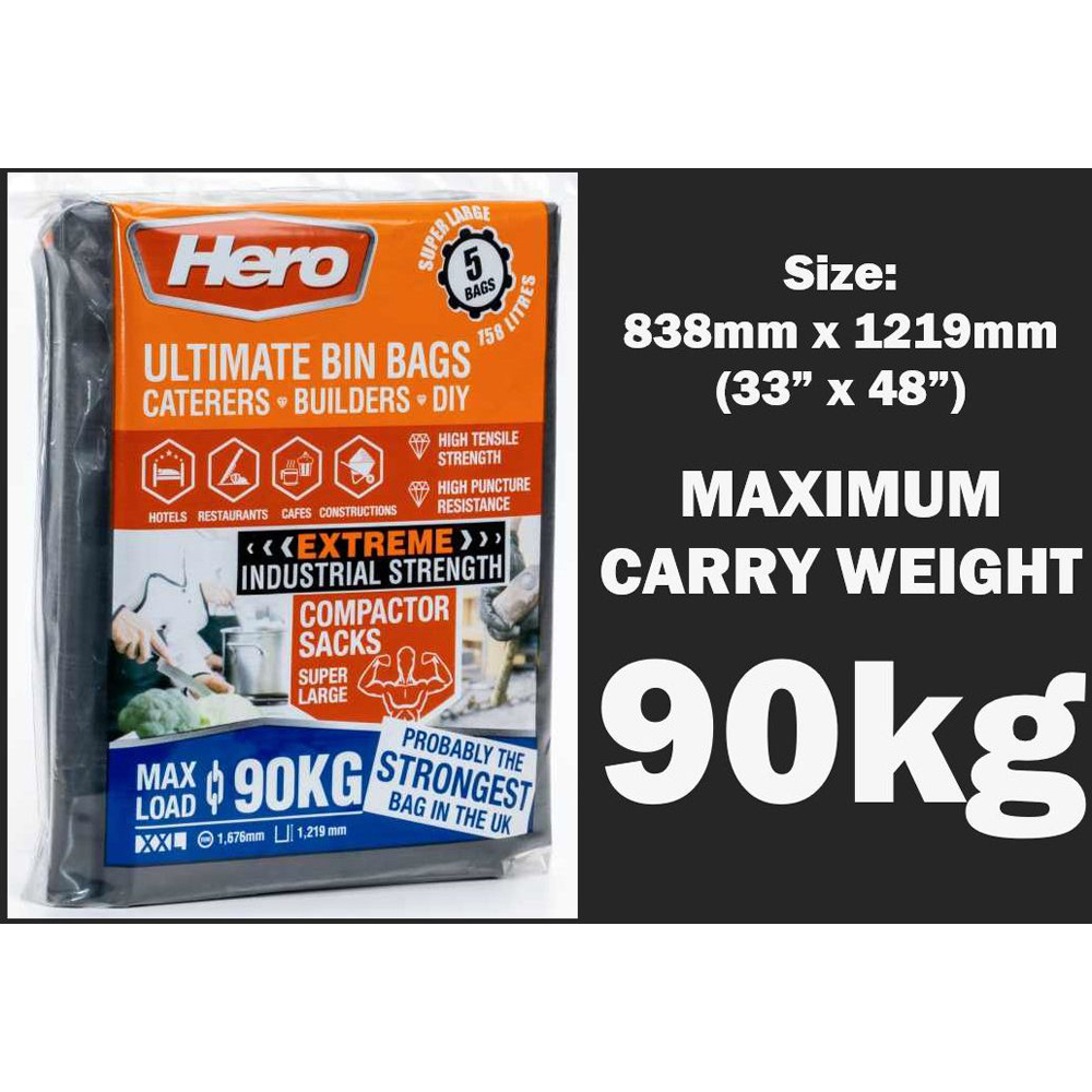 Experience the practicality of Hero Heavy Duty Bin Bags with this 158L Industrial Garden Refuse Sacks, designed for durability and strength. Perfect for handling a variety of waste types, these extra-large, black bin bags are suitable for food waste, paper, plastic, and general refuse, making them a versatile solution for your indoor or outdoor waste management needs. Crafted from high-quality polyethylene, these bags boast a robust construction that can withstand the demands of any room or outdoor setting. Each bag measures 1200mm in height, and 840mm in width, and has a generous 76m length, ensuring a secure and hygienic disposal of your waste. With a capacity of 114L, these bags provide ample space for your refuse, reducing the need for frequent changes.