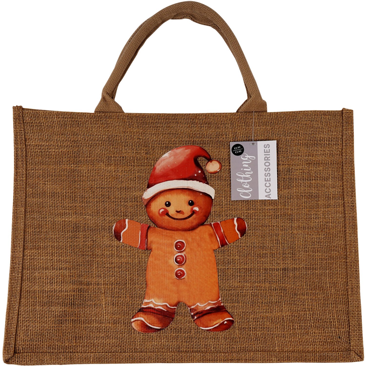 Get the perfect companion for all your holiday shopping needs with the Hessian Christmas Shopping Bag Large. Reusable year after year, it is ideal for carrying Christmas presents. Its spacious design makes it a versatile accessory, perfect for transporting everything you need for a joyous holiday season. This bag is available in an assortment of gingerbread and reindeer designs.