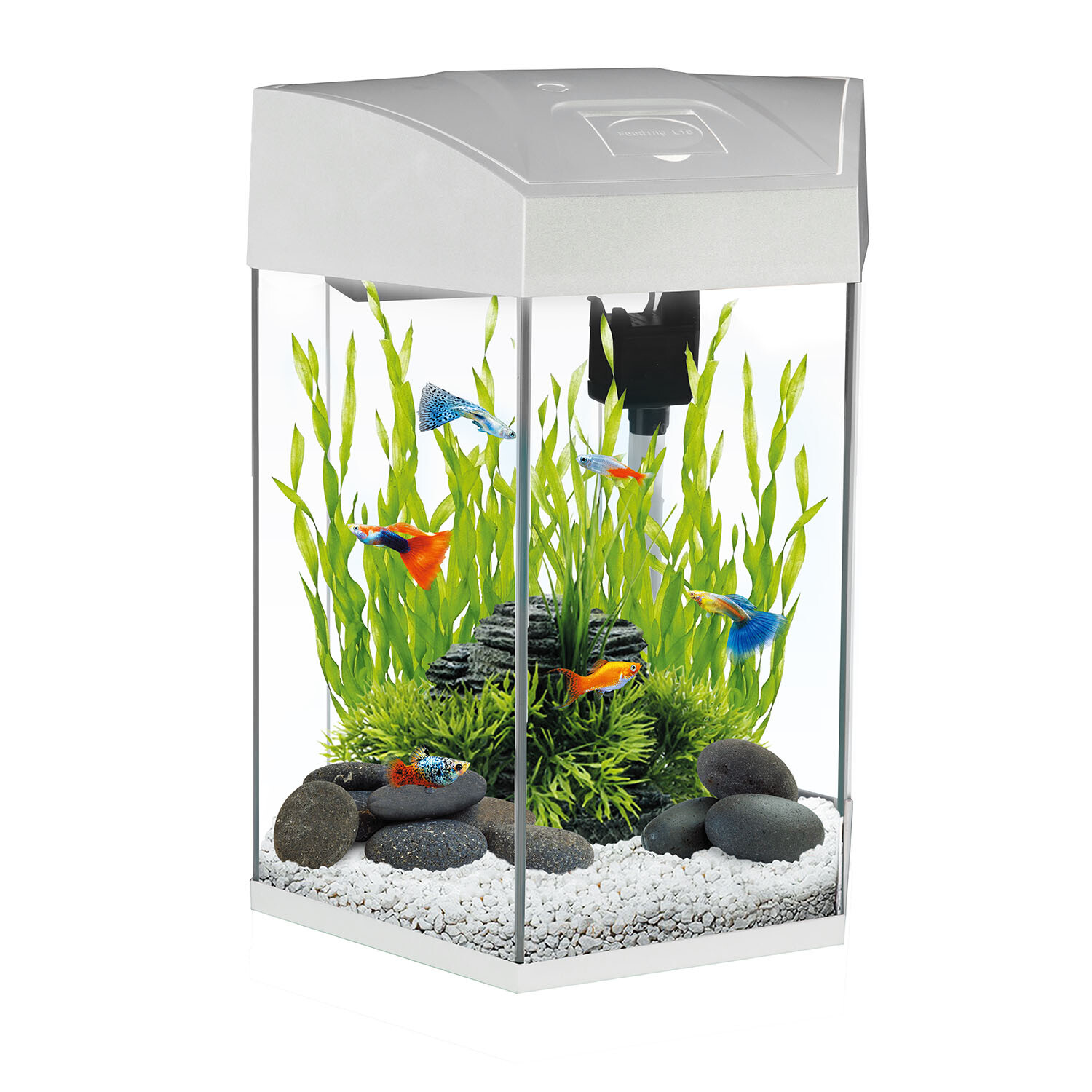 Make the perfect addition to your space with the Hexagonal Aquarium. It features a sleek design with touch-control LED lighting, it offers two light modes including a vibrant RGB colour-changing effect and a solid eight-colour mode. The aquarium includes an efficient top filtration system, ensuring clean and clear water for your aquatic friends.