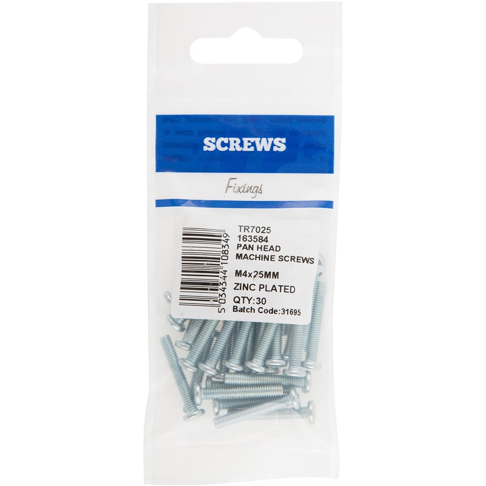 Secure your projects with confidence with the Hiatt Pan Head Zinc Plated Machine Screws M4 x 25mm. With their corrosion-resistant coating and various sizes, these screws are perfect for fastening sheet metal, metal fencing, or any metal structure in your home, garage or garden. Their pan head design allows for easy installation and a flush finish, ensuring a tidy look. You can trust these screws to keep your metal structures securely in place for years to come. These screws are zinc plated for corrosion resistance and are available in several sizes. They are ideal for securing sheet metal, metal fencing, or any other metal structure in your home, garage or garden. Pack for 30.