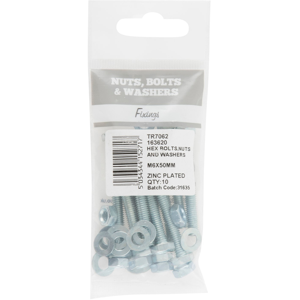 Hiatt M6 x 50mm Hex Bolt Nut and Washer 10 Pack