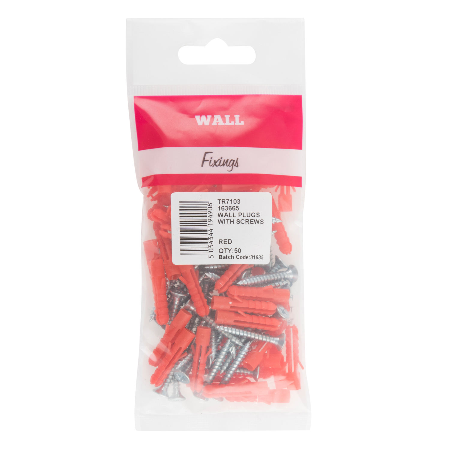 Hiatt Red Wall Plugs with Screws 50 Pack