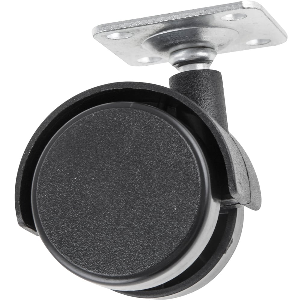 These black Twin Wheel Castors are suitable for office or living room furniture. The twin wheel design gives greater mobility, and the metal fixings are zinc plated for resistance to corrosion from moisture.