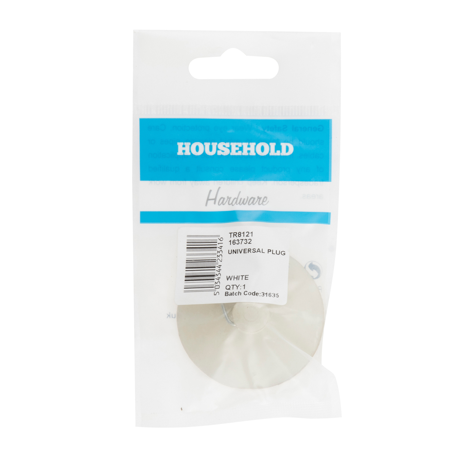 This white Universal Plug fits standard sinks and includes a handy loop for attaching a wire. Easy to install, this is an essential for any home.