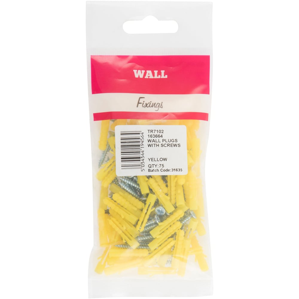 These packs of Wall Plugs with Screws are available in various colours and quantities. Choose from yellow, red, or brown to use on your DIY projects.