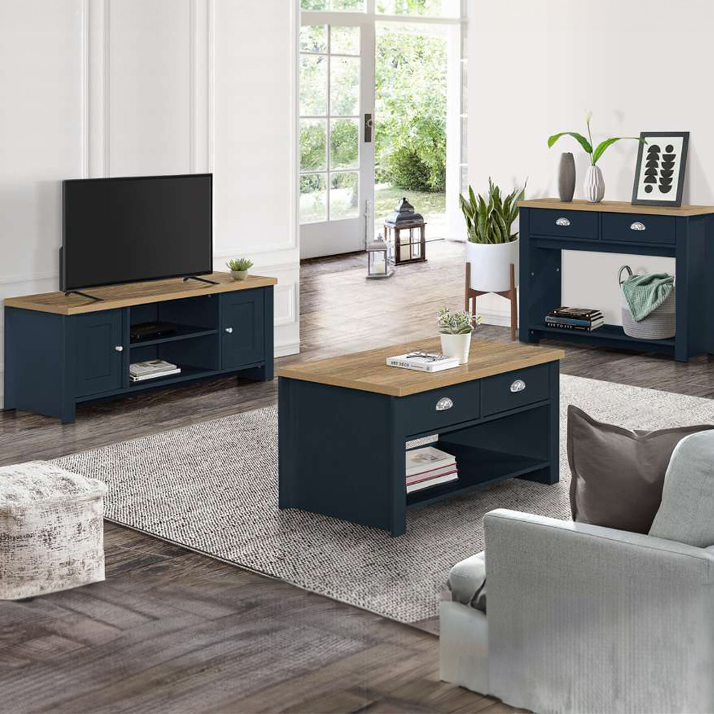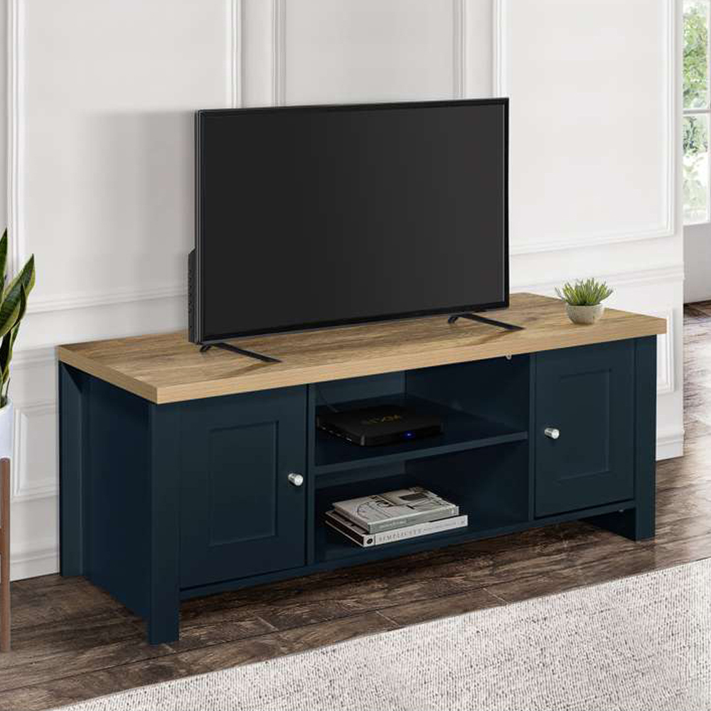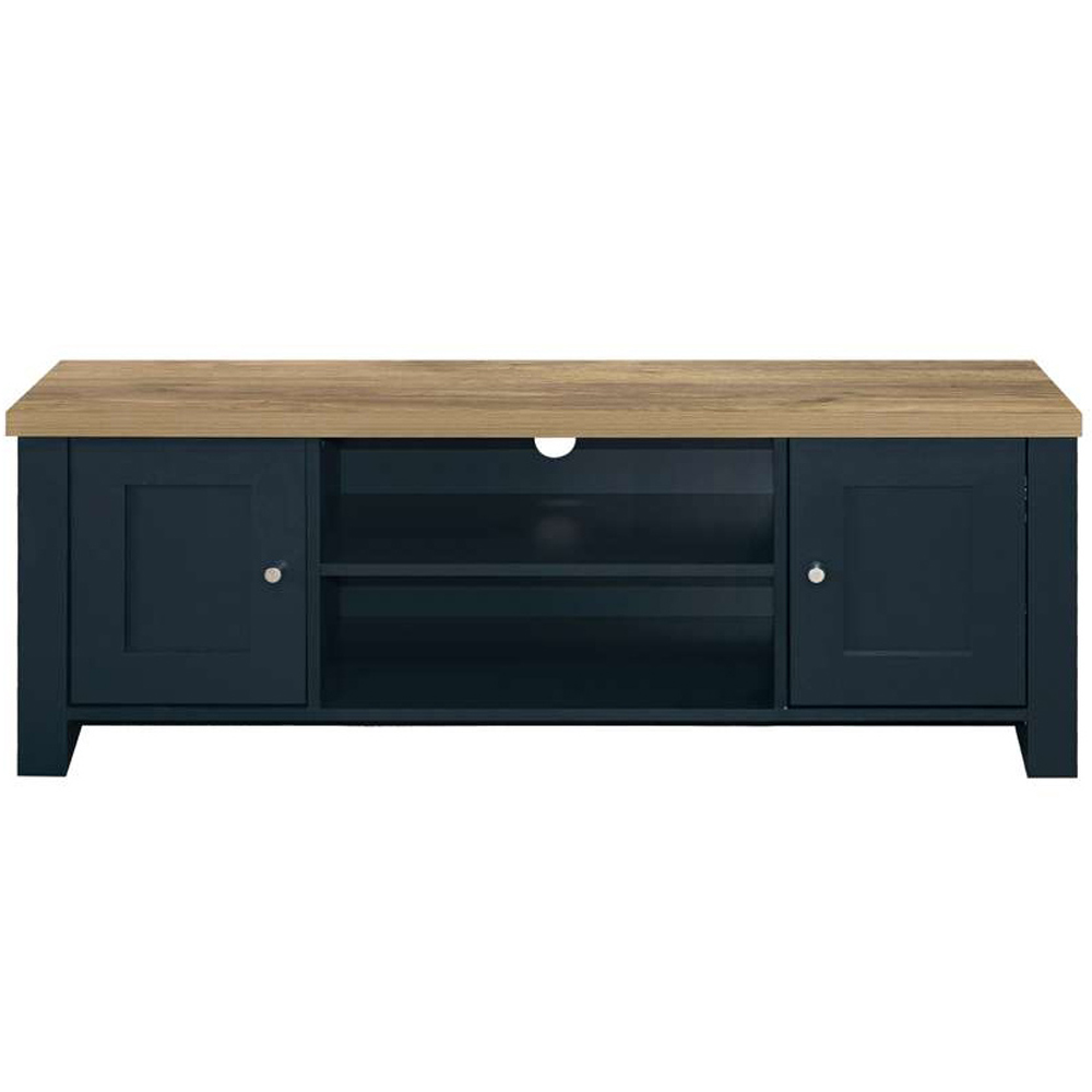 Highgate 2 Drawer 2 Shelf Navy Blue Oak Large TV Unit