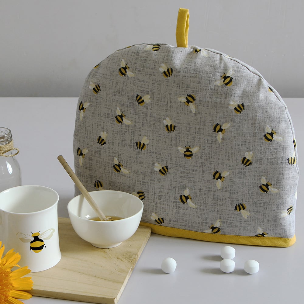 Keep your tea warm with the Highlands Homeware Bee Print Tea Cosy. This tea cosy features adorable bee prints, making it perfect for insect lovers. It's crafted from high-quality cotton and has thick padding for insulation. The cute bee print adds style while keeping your teapot warm for longer. It has excellent heat retention and can snugly fit most teapots.