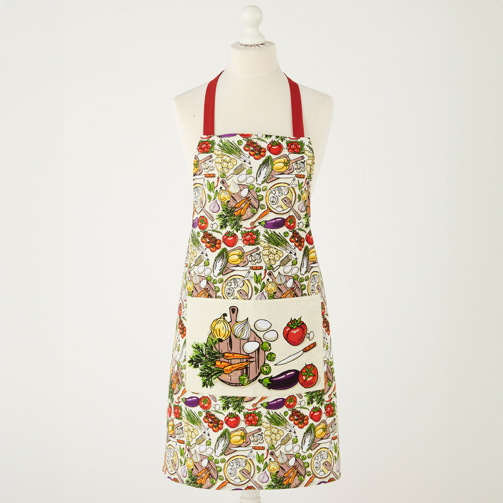 Add a touch of traditional country kitchen with this Highlands Homeware Kitchen Print Cooking Apron. This cooking apron features cute kitchen prints, making it an ideal product for traditional country print lovers. It comes with an adjustable tie that ties around the waist and an adorable pocket with vegetable clipart. This is an unisex apron suited for adults.
