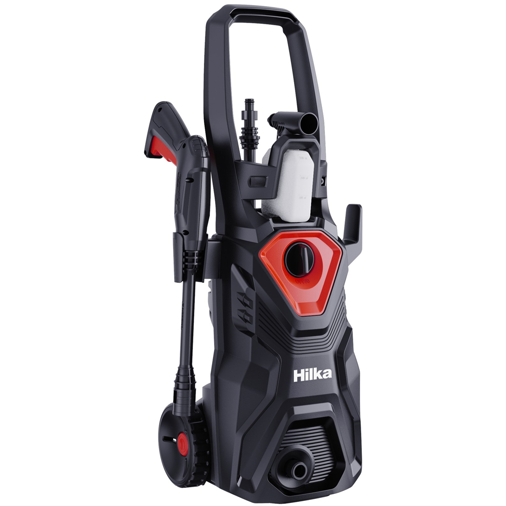 Perfect for cleaning cars, driveways, and patios, this powerful pressure washer includes a quick-release head function with an adjustable high-pressure nozzle, turbo nozzle, foam bottle and patio brush for versatile use. Designed for convenience, it includes a 5m mains cable and 5m pressure hose. The auto-stop function helps extend the unit's lifespan, while its 1600W motor gives 130-bar max pressure and 8L/min max flow rate for powerful cleaning performance.