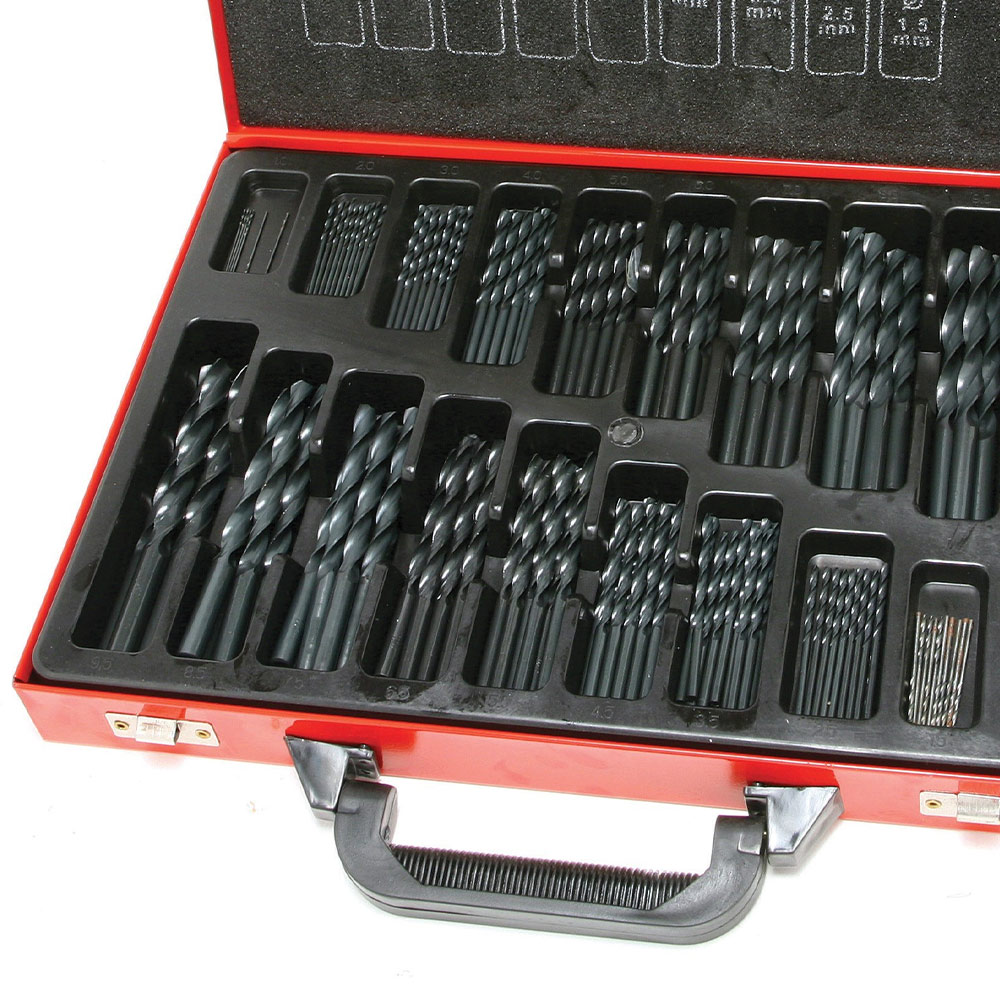 170-piece HSS drill bit set is made to DIN standards. Contains 10 of sizes: 1, 1.5, 2, 2.5, 3, 3.5, 4, 4.5, 5, 5.5, 6, 6.5, 7, 7.5, 8mm and 5 of sizes: 8.5, 9, 9.5, 10mm. HSS drill bits are suitable for general and workshop use on metal, plastic and wood.