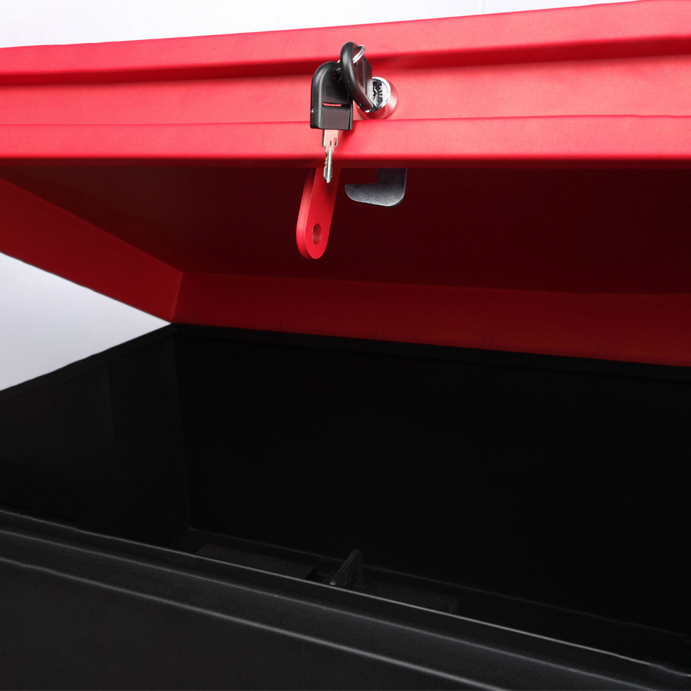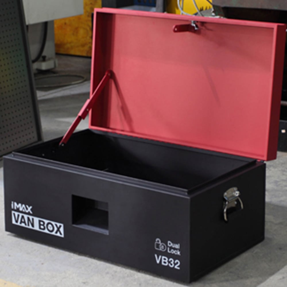 Store and organise your tools in Hilka 32 Van Storage Box. This heavy-duty steel safe provides protection for tools and equipment. It has a double lock system with a recessed locking area and a key lock-in lid. It provides quick access on-site or double-locked protection. Fully welded seams and reinforced overlapping lid provide protection from weather and forced entry. It's made from tough industrial powder coated with a piano hinge and steel handles. Heavy-duty industrial lid stays, preventing accidental closure.