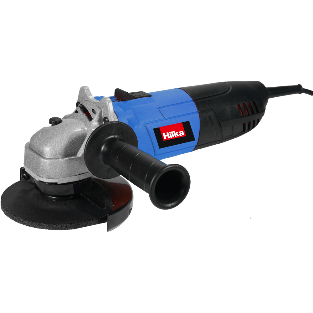 Revolutionise your approach to metalworking with the Hilka 4.5 inch 910W Angle Grinder. This powerful grinder boasts a 900-watt motor, providing adequate power for your cutting and grinding works. This grinder comes with two position adjustable auxiliary handle that has a lockable push button switch and a soft grip, allowing a greater ease of use. It features an M14 spindle thread with a lock for easy wheel changing. It also includes an adjustable safety guard for protection. The package comes with adjustable grinding guard, spanner, two position auxiliary handle, a hex key and a spare carbon brush set. This grinder operates at an input power of 900-watt with no load speed of 0-12,000 per minute. Plus, it accommodates a maximum disc diameter of 11.5cm. It operates on 230v and 50Hz. Please note that the disc is not included.