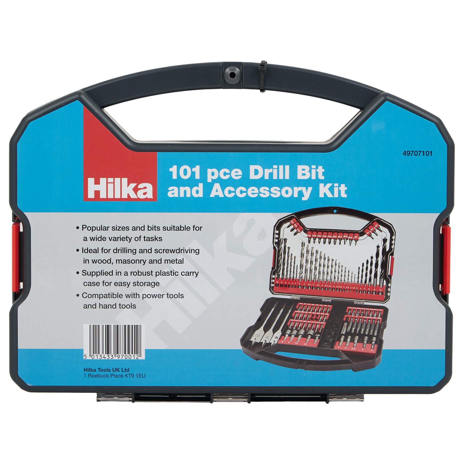 Make a practical addition to your toolkit with this Hilka Drill Bit and Accessory Kit. It includes popular sizes and bits which are compatible with both power tools and hand tools for a wide variety of tasks. Supplied in a robust plastic carry case for easy storage, they're ideal for drilling and screw-driving in wood, masonry and metal.