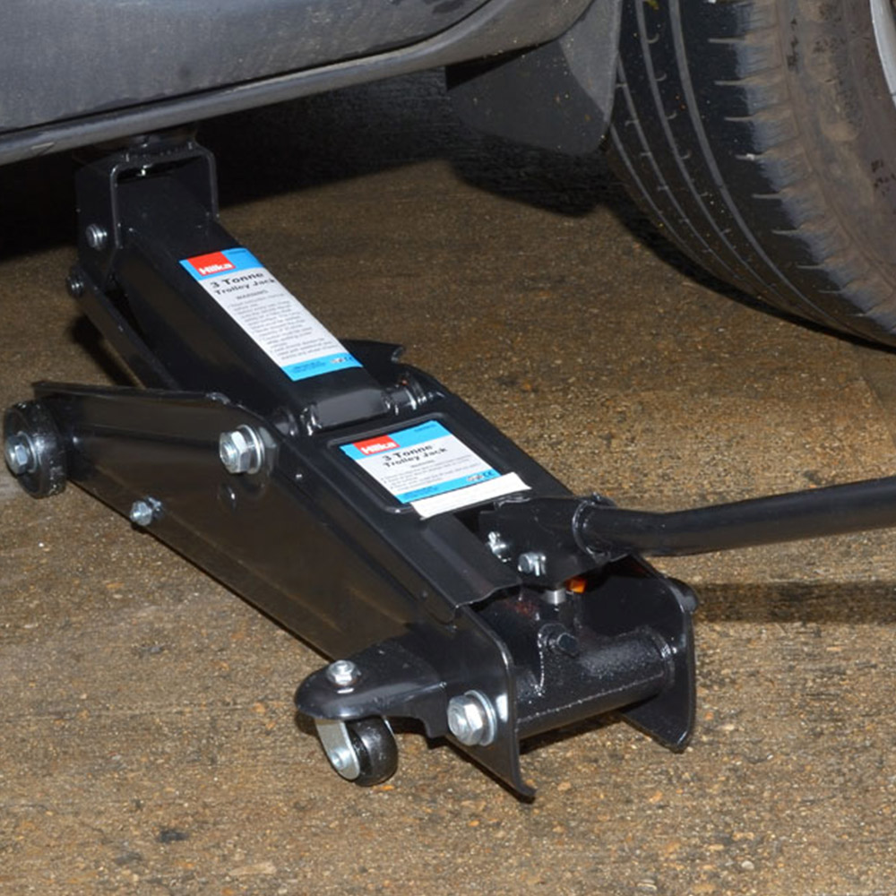 Hilka 3 Tonne Trolley Jack is an all-steel construction compact heavy-duty unit with a lifting range of 150mm to 410mm. Built-in pump overload prevents overloading for safe operation with a hydraulic bypass system to stop ram overtravel. This jack is suitable for larger cars, light vans and 4x4s. Weight 19.6 kg, packed in a colour box.