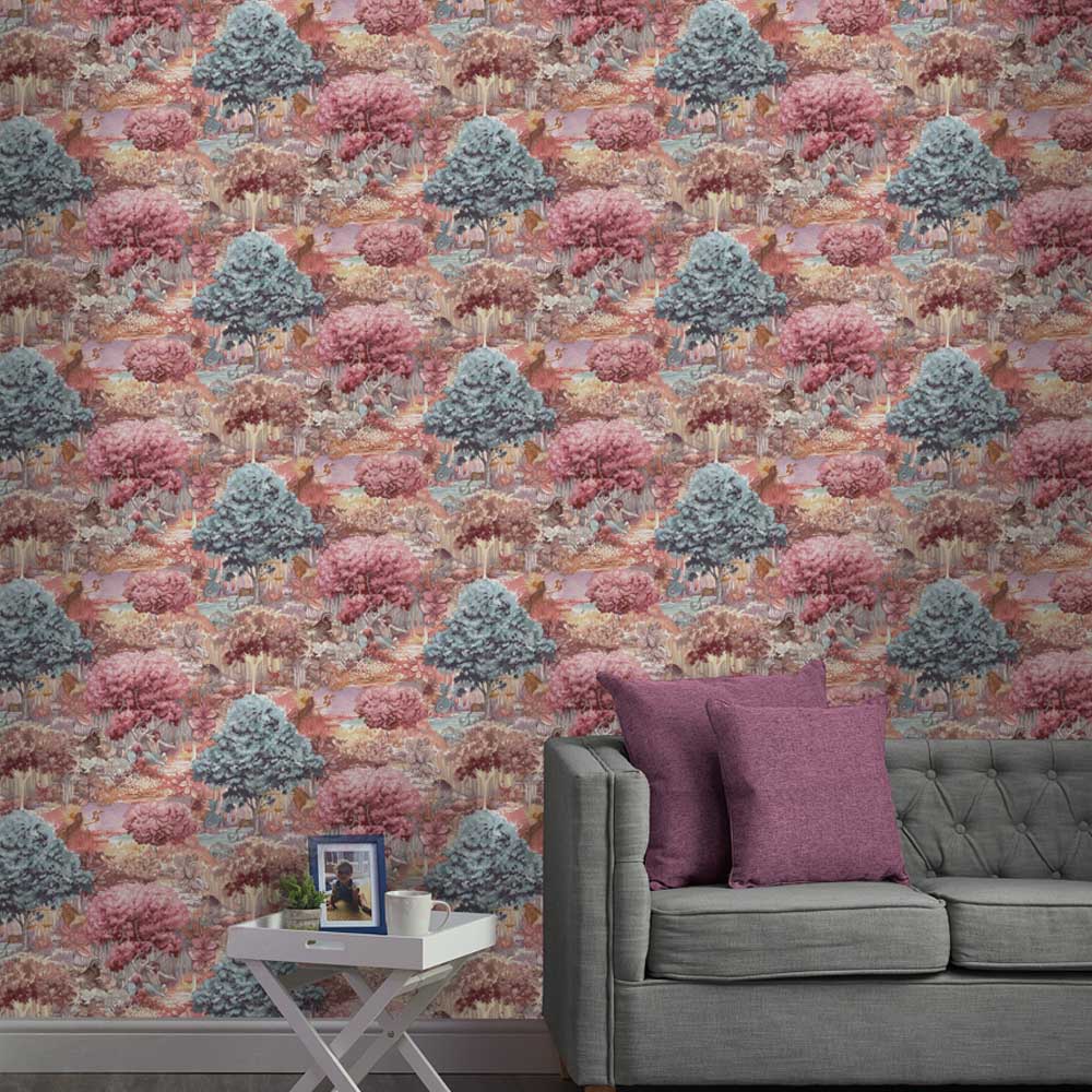 Enhance your room decor with Holden Astrology Pink Wallpaper. This design features a forest landscape encompassing the signs of the zodiac. It includes the symbols and the four elements; earth, air, water and fire. Featuring a modern, contemporary pattern, this high-quality FSC paper substrate fantasy wallpaper has a smooth finish and is spongeable. It is suitable for the bedroom and living room. Application: Paste the Paper. Design Match: Offset Match. Design Repeat: 53/26.5cm. Roll Length: 10m, Width: 53cm.