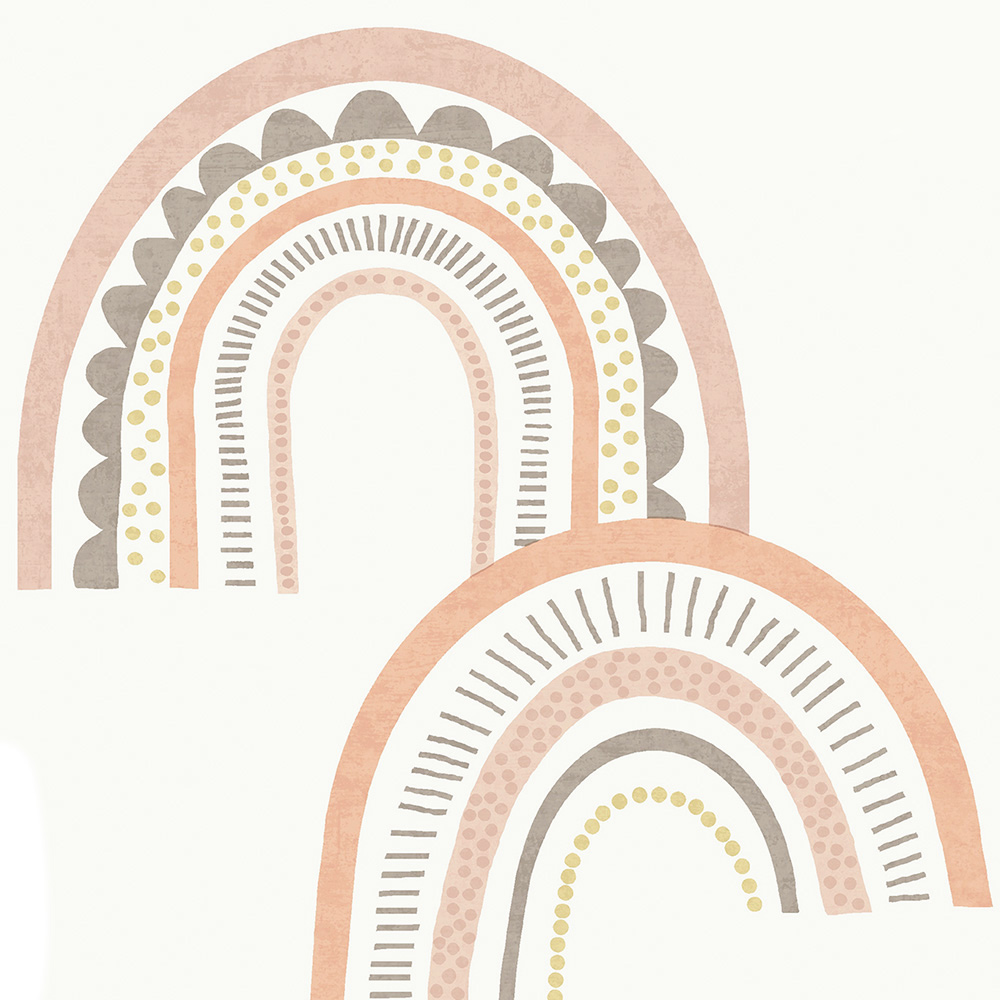 Make a fresh addition to your home decor with Holden Decor Boho Rainbow Wallpaper. Perfect for any child's bedroom - this quality FSC-certified wallpaper features multi-coloured rainbow arches made up of interesting patterns such as scallops, spots and stripes. This wallpaper with a matt finish is smooth and spongeable. Application: Paste the paper. Roll length 10.05m. Roll Width 53cm. Design Match: Offset. Design Repeat: 53cm/26.5cm. Colour: Blush/Orange.