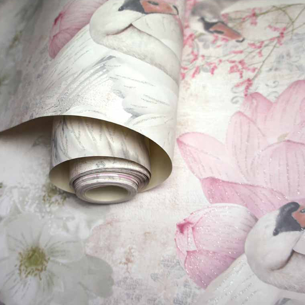 Add stunning style with the Gabriella wallpaper. This gorgeous wallpaper features a collage of swans in a bed of flowers and ornamental patterns. It's perfect for a feature wall in a bedroom or living room. Paste the Paper. Design Match: Offset 32cm, Design Repeat: 64cm, Roll Length: 10.05m, Roll Width: 53cm.