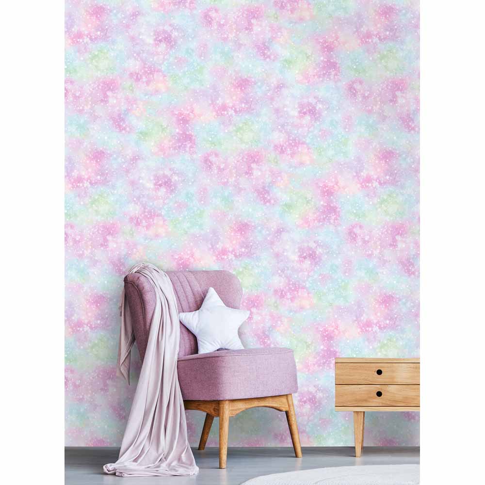 This Iridescent Texture wallpaper is a colourful fun design finished with glitter dots to add that extra shine - use it as a feature wall or go all out on all four walls for a truly magical finish. Paste the Paper. Design Match: Offset, Design Repeat: 53/26.5cm, Roll Length: 10.05m, Roll Width: 53cm.