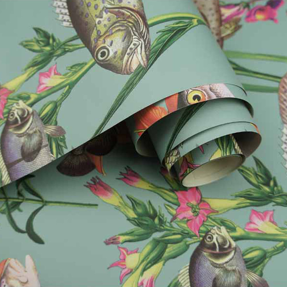 Give your home a charismatic look with the quirky design of the Lagoon wallpaper. The matt printed wallpaper has fish entwined with delicate florals featuring an infusion of bright colour and rich teal background. The high-quality wallcovering will suit your selected space naturally and help you make your rooms look good. Ideal to suit any interior decor style, the wallpaper will give a touch of floral sophistication to your home. Application: Paste the paper. Design match: Straight match. Design repeat: 53cm. Roll length: 10.05m, width: 53cm. Colour: Teal.