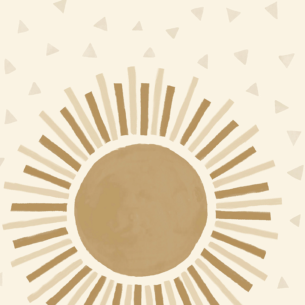 Bring a fun touch to your kid's bedroom with Holden Decor Sunbeam Wallpaper. This quality FSC-certified sunbeam wallpaper is a stunning design featuring painterly sunshine and sunsets on a background of patterned triangles. Perfect for any child's bedroom - this wallpaper is smooth and spongeable. Application: Paste the paper. Roll length 10.05m. Roll Width 53cm. Design Match: Offset. Design Repeat: 53cm/26.5cm. Colour: Beige/Gold.