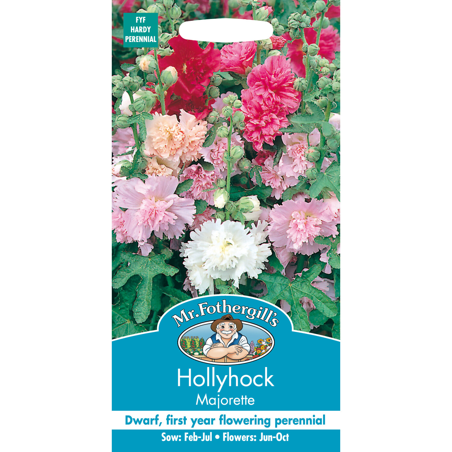 With delightful powderpuff, mainly double flowers, Hollyhock Majorette Mixed Seeds will flower the first year after early sowing. As dwarf plants, they're great for smaller gardens and spaces.