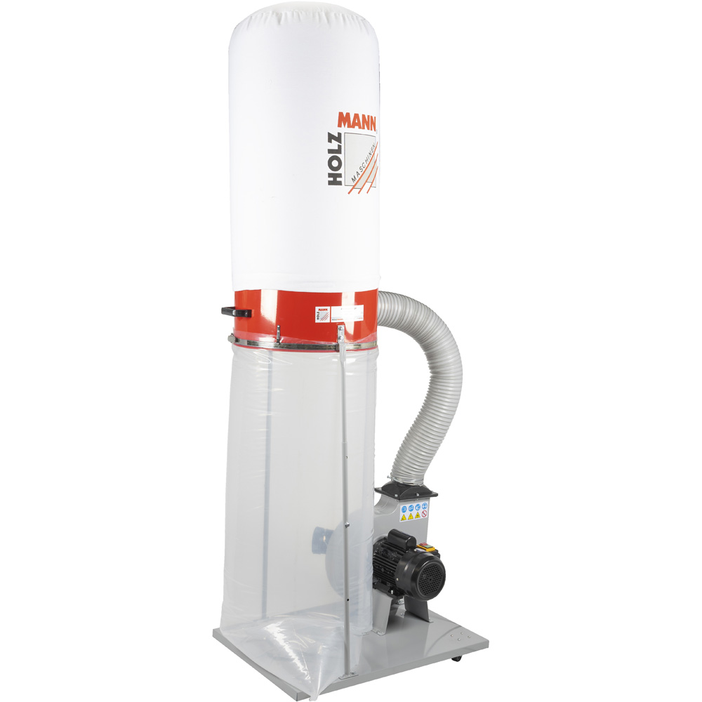 The Holzmann ABS2480 high volume wood chip dust extractor for larger workshops. Features include sturdy steel construction, powerful 2250 W induction motor, high suction performance, 2480 m3/h airflow, 300 L capacity waste collection bag, large heavy cotton filter bag for good filtration performance. The machine also comes with twin 100 mm Ø extraction inlets which allows for dust extraction from two machines at the same time. The 4 x swivel castors make the machine highly mobile and allow for easy movement around the workshop. The ABS2480 dust extractor is the ideal solution for medium sized workshops, and extraction of large amounts of wood chip waste.