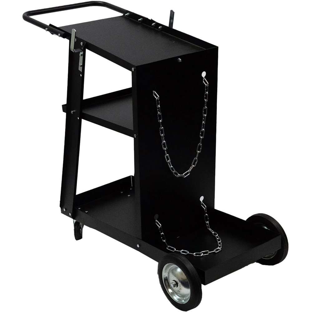 The Holzmann Mobile Welding Trolley is suitable for all types of welders. Made from sturdy and robust steel construction, this versatile trolley is the ideal mobile storage unit to mount your welding machines. The top shelf is suitable for mounting the welding unit, with centre and bottom storage compartments. Also, there is gas bottle storage and comes with two chains. The push handle and two moveable wheels, plus swivelling castors make it a completely mobile unit. A universal welding trolley is ideal for most welders and metal workshops.