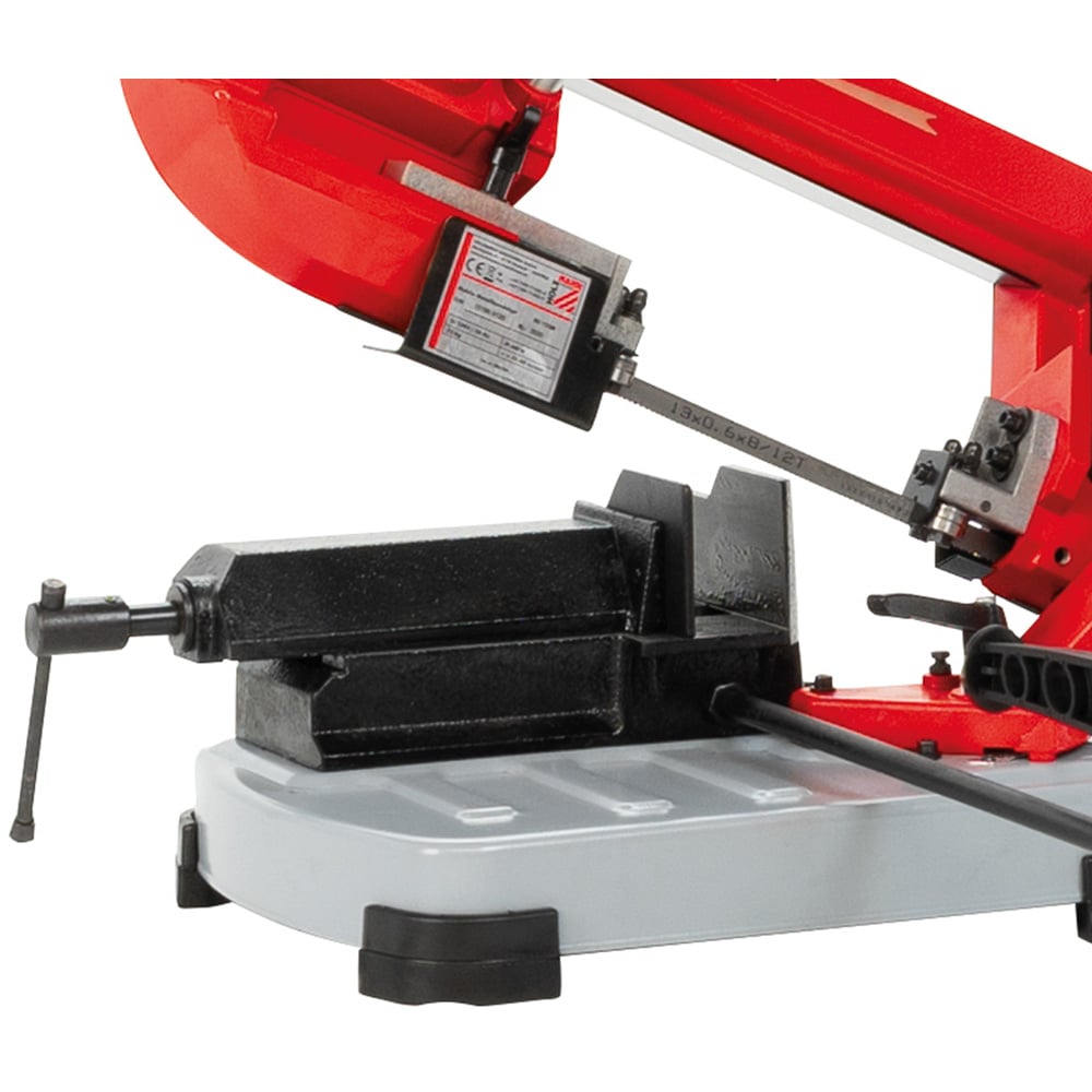 The Holzmann BS125M Portable Metal Cutting Bandsaw 125mm is perfect for cross-cutting steel pipes, bars, and profile sections and cutting other materials such as alloy, copper, stainless steel, PVC, or Teflon. This bandsaw features a powerful 400-watt motor, and has a maximum cutting performance of 130 x 125mm (LxW), step-less variable speed control 2000-4200 rpm, automatic end stop, and can perform mitre cuts up to 60°. Also, it comes with a sturdy steel bench plate, solid saw arm, spring down-feed control, and workpiece limit stop. Lightweight and portable, it has a handy transport lock for easy movement and convenience. Voltage: 230V.