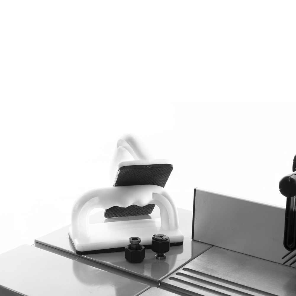 The Holzmann TFM610V bench top router table for the DIYer and hobbyist with a smaller workshop. Features include a powerful 1500W motor, die-cast alloy table, adjustable alluminium guide fences, 0-40 mm cutter height adjustment, and 6 step electronic speed control 11500-24000min. Includes left and right side extension tables for adittional support when moulding longer lengths of wood. Includes 6, 8, & 12mm and 1/4" + 1/2" Ø collets, and sliding mitre guide for end grain moulding. This compact machine is suitable for all home woodworkers, DIY enthusiasts, and craftsmen wanting a free standing router table.