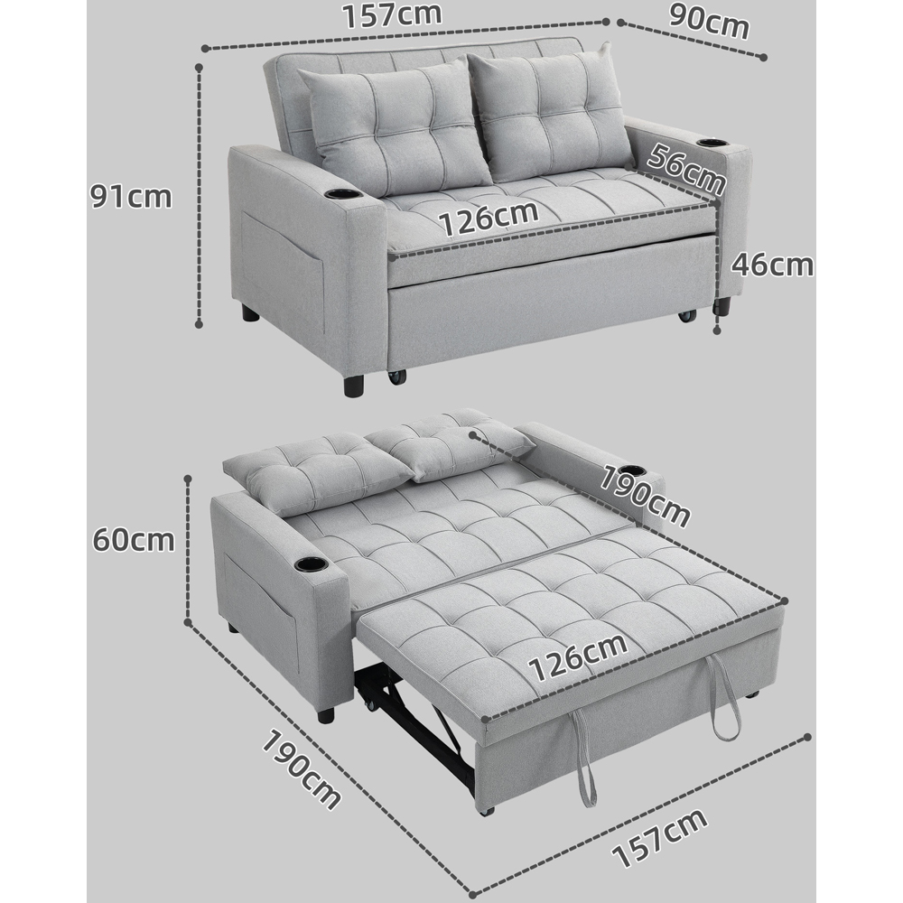 HOMCOM 2 Seater Light Grey Convertible Pull Out Sofa Bed