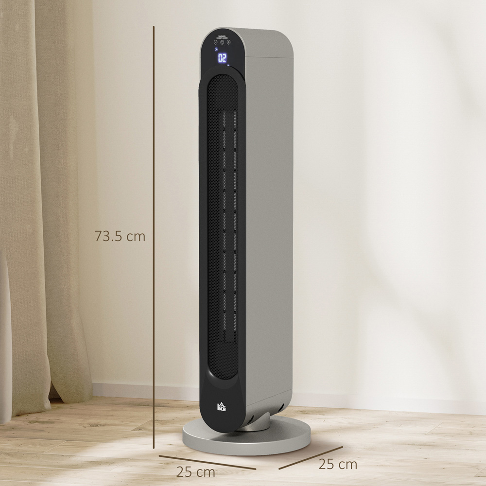 Enjoy a warmer home with the HOMCOM Silver Ceramic Heater 2200W provides efficient heating with a 10-35℃ adjustable temperature range and three modes fan, 1100w, and 2200w. The LED screen and remote control make it easy to adjust settings, while the 45° oscillation ensures even heat distribution. A 12-hour timer adds to its convenience.